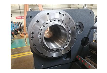2)主軸為高精密通孔式主軸,采用國(guó)產(chǎn)大直徑精密雙列圓柱滾子軸承和雙向角接觸球軸承組合排列,剛性好、精度高,采用強(qiáng)制油潤(rùn)滑,在恒溫、凈化環(huán)境下裝配,并經(jīng)過精密靜平衡測(cè)試,可保證主軸運(yùn)轉(zhuǎn)平穩(wěn)。